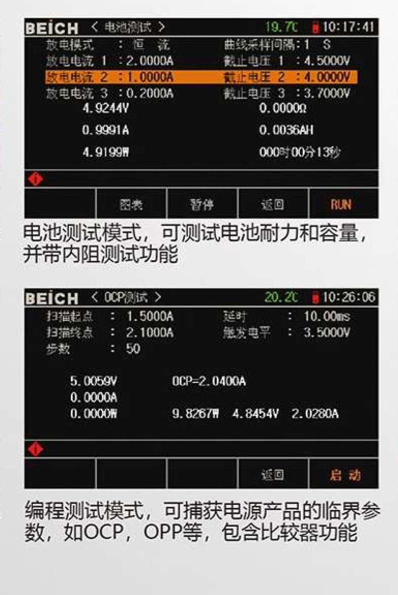 ■ 電池測試模式,可測試電池耐力和容量,并帶內阻測試與曲線(xiàn)描繪功能