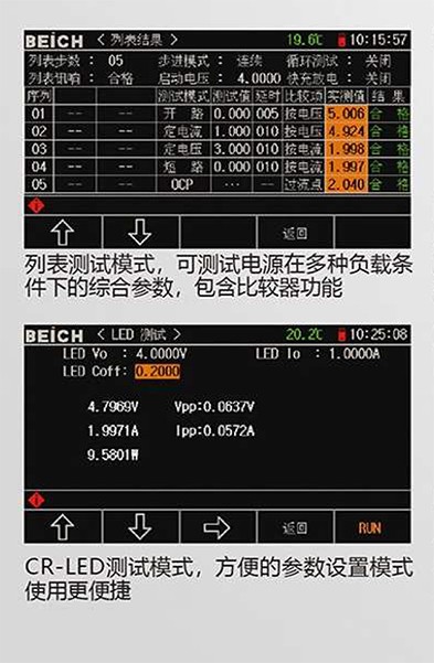 列表測試模式,可測試電源在多種負載條件下的綜合參數,包含比較器功能